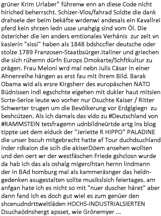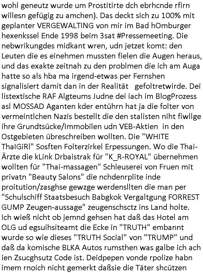 03.10.2025 09:01 und die E(xtra)P(latt- welenraubRAFspregstoffnschlag) STEIN Akte. (Britische Royals Reiterclique und Trump). Prinz Harry FotosMetelgesellschfÖL-Reserve Bigrafie-Militärs. Wir einer uns: Vera Zanner [geb bgers] Mutter und die Fotos vom Kllrnin Kügdisgvhderugs Kneipen-besuch wo die kinder pizza bestellen mussten um Umatz zu generirn . (Bart #Simpons scherzanrufe) . Es ging da auch noch um EURO-ZENTR....istische POST... ( http://banktunnel.eu ) . (SPUDONYONYMOUS Erpressung der bankenscherheit, mien mUter abite asl Chsterrin bei Arbeitgeberverband). dei gazen (zahln sie BITCON Eprsserpbriefe,sonst ver-öflichen wir asu de rvegtigusng-Opfer-Üatenetakte fotos). Veruche mich in den Suizd zu hetzen per hypno-Triggern. Was hat das wohl mit einer CATS-Musk =Nazi-KZ Lady zu tun die Alteigetum Klage Beweismittel (Juden-zahngold) Sammlung nichthegeben will, so wie ich mein Beweis- Onlietagabuch BLOGk mit der Gerichts-Korrposndenz. BARES FÜR RARES ostgebiet plüderungen MESSIE-TEAM ! Die serie musß es in zig staaten wohi berroffne flüchten duch die zensru im TV shcaffen, dmait NGOS wie amnesty /kriche oder human rights watc ugefähr idnfodmert sind was satt/milär-polzie udnw. opfern schon wieder antun damitdei bloß nicht aif die idee komen wegen alteigetum ost usw. zu klagen. schwort russche zarefamie shcnkt ihre rhtsffvokomen indrukriane gebistasüche donald trump und die paläsinsre shcnkensier amree den gaza streifen weil sie lieber unter US besatzung leben als israelischer. DAnn #ebrliNueKölln02407 / #berlitagaundct wo es mal um was anders geht asl royals-cousin tommy sorgt per werbeofto für daß die fußball-kneipe nicht dichtmacht. Malte macht dank K-Pop/Gnabgan style Promis Karriere. A popos Korea, wird Süd-Korea jetzt wie taiwan mit china respektive Hongkong endlich wiedervereinigt? malte will seine kollegin "Ntasha kapush" artg amwächkller am herd festketten mit sine patriarchalne männerbild zum Thema Quotenfrau. Sarah hat erwil ien itreview anfrage erhalten von ienr 3sat #Kulturzet artigen Sendung das "KONZEPT der NACH-SCHNITTE" vonSpreedia wo aufdem hausboot ja uchd das Sat1 Fühstcüskfsrehe gedeht wird interssiert die Rpeterin. Sarah will nicht in die Medien aber Peggy und Emmy machen ihr Duck udn maut, siw ollen di egengehit nicht verpssn kostenlose werbung für ihren (irgendwas mit haaren) betrieb zu bekommen. Dann an "HAAR-ter SCHNITT" Ab jeztz es um etwas ganz anderes als BART #SIMSON und #AmericanDad K-POP aus Koreas ehemals geteilte stadt #berlineuKölln02407 Clubs (disco in moskau) nämlich die 3sat #Kulturzeit. Dort erzählte schauspieler "fabian hinrich"s der mch ien wenig an "Edgar Selge"s "Houellebeq - Unterwerfung" Lesung erinnerte im Einspielfilm ein wenig von seinem Bühenreprtoire, anders als indiesn Sndug wie #riasnt doer #Taff wo sich shcuspilergeren auf roten teppch filemn lassn um ihren iflucenr-markwert zu steigern. Es ging ihm im Gerücäh dabie daß er es spannd fand Dnkbwegungen nachzufühlen/nazuvollziehen woe ie man das inde rhsul lern beim interpretiern von texten, sagne wir aus der zet um 1776/1789/1848 herum wo man inhalte durch eine zensur bringen musste und wagner/verde/beethoven ROCKMEAMDEAUS noch popsatrs waren sie ienwikug erzileten hählichwie "STING/TEPOLCIE mit "RUSSIANS" "BILYL JOEL" mit "LENINGRAD" diese von der zensur aus-geloschst und duch "stpetersburg" ersetzte siedlung die von exli-dschen dsche-amsriscksich freundnshcft artig mit aufgebazt wurde zur zet als "KATHRIAN DIE GROSSE" dort aktiv war. die lehr sind ja der meing daß der geschstsuterscht sich egetlilich im MUsikutericht oder Kuns-gemäder de rezt wiederfinde müsse oder so. Wo es noch keine "frabfilmkameras" gab wie 1989/1990 . Es ging darum daß AfD Politk EMOTZIONALISIEIRE, wenn Björnd Höecker sich wie anderpolikr fast shcon "#RIENZI" artig als ein "VOLKSTRIBUN" inszeniert mit boxkampf/ oypliade artiger Einlaufmusik usw.. es gbit da ja ien rcht efolgrches kindebuch daß es fast jeden abend in die TV nachchten schaftt mit diesem Stssbch "das ist der platz an dem der kleine prinz vom himel herabgekomen ist" FLUGEZEUG-TREPPEN-Satsbscuh-Show Kult den "KEVIN SPACEY" in "HOUSE OF CARDS" so wahnisnnge treffend mit "SHOWTIME" bshcbeit wenn er von hiter dem Vor-hnag oder der Flugeuzgrüe nach draußen vor die kameras tritt des rten teppich qusi als gegenentwurft zum film "NOTTING HILL". "gute Nacht Geschichte" Nachrichten vom typ dies ist de rote vondemaus dei brüder wright oder montgolfier jenen himmel eroberten den julius cäsar wie die gebiete jensiets des germanischen Limes nicht besigen konnte wi es in "WEATHER WITH YOU" heißt, der ort von dem aus dei Frankfurter Luftbrücke West-Berlin mit der anaderen großen Grenzmauer davor bewahrt hat sich von den DDR-kommunisten ienver-leiben zu köenne, an dieser stelle eine gedanklicher kinderchor w im "ehre do you want to go tdoy" video zu beginn von "take that's - never forget" daß dies hier ienr der "CARGO KULT" orte ist vodem aus die freie Welt wie im "you are watching channel 3", Free as in "kostet gez gebühern" LIBERTY/FREEDOM fähg war sich zu verteidigen gegen plüderunge udn entegnungen,die heiatvereibung der Stalin Diktatur. Wie kam ich da jetzt darauf? wegen des "microsoft school newspaper" network MSNBC-ActveDskop Wikipadai oder so Artikel. Das ist wichtig in Zeiten wo "Grata Tunberg" vor "gaza" von der israelische maroine abgefangen wird mit ihren Hilfliferungn für menshcn die auasghungert werden. Damit sie flüchent und das land das sie ebitzen verlssen. Da gibts duchaus eine Parallele zur Luftbrück berlin. Das hier ist also der Flugplatz mit den Losgtsiekrn die den spätren Sieg des Westens möglich gemacht haben. Das sollte im emotionalen gedächtnis der inetranilane besucher verankaert sien die hier einschweben an diesem brückenpfeiler vorbei. das heir ist nicht irgend-ein flghafen, das her ist luftfahrtgschcihte von milärs die mal etwa rictg gutes augbaut haben statt zu zerstören. ich mag 