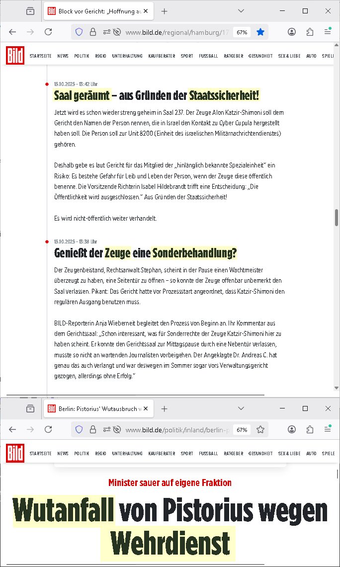 16.10.2025 04:00 Ich hab ja schon wiederrichtig gute Laune, kaum hatte ich mich bei der Polizei in Hamburg gemeldet vogstren gabes gestren dann Meldungen über die (Zeugenshcutz Code) "Mossad Abteilung 8200" Zeuge die Sonderbe-handlungen erhalten und einen geräumte Gerichtssaal. So kann dann logscherise auch kein Dritter aus dem Publikum / von der ress sagn daß das gar nicht die richtigen Zeugen sind, das man da versucht hat einen stalinistzchen Showprozess zu führen ähnlche dem was auf ZDFinfo über den Spionage-prozess gegen Oppenheier lief der posthum rehabilitiert werden musste. Wirt obe idner bild zatung parngten eldunegn üer Wuatsubüche iens cholerischn Pistorius den ich shcon lange schritflich zum Rücktritt auffoderte, im Parlamant hat seine Koalition ja das zegen alle Umfragen eindeutig keinerlei veölkerungs-Rückhalt mehr, die AfD ist in fast allen Umrfagn längst vor der CDU, das Wahl-Volk ist stinksauer über die Wahlbetrügereien von Merz der geaudie selebshcuiiße macht wie Scholz. Dazu gab es weiter oben auf der BIld-Online Website getsren wieder mal Nachrichten über angclieh "Manövertote" vonden es in Fachkrisn imwmr wider heißt dabei handele es sich in Wahrheit um regerchte militärinterne Hinrichtungen die dann offizeill als Unfall getarnt werden. Parllelljustiz wiel in Dsuchalnd das jüdische udnfrmdtsämmige Adelshaus GroßKaitalrgeirt aber schon seit Jahrn nicht mehr das deutche volk, siehe die Ukrien "Waffen ggen Rohstoffe - Habbuegrer Altegusmfragen in der Ukraine" und mit der Bible/Altes Testament begründeten Gebietsansprüchen israelischern Zisisten auf Palästina gerade gewaltsam durchgesetzt mit einem Massenmord an zigtausenden unschuldiegen Palästinensern die sich notwehrten am 07. Oktober gen das was ihnen Netanjahu-Israel antut. Wei esgta, ich hab mich vorgestren gemdlet, udn gestern stand deis schwachnsinn üer zeugen sonderbehandlkung in der zeitung sowie über ELEKTROSCHE TAGEBÜCHER die "christna BLOGck aus HMBUG" zurückhält ganz ähnlich "[schülerzeitung]E[xtra]P[lattjuwelenedel]STEIN-AKTE" (RAF Terroristein Daniele Klette Raub bei Juwelier Zeus zur Fluchtfinanzierzung nach dem Sprengtsoffsnchlag auf Herrhausen) im Kidnappingvarfahren. Ein maniplation duch Korrute Führugssptze polzsten udn AUSLÄNDISCHE geheimagenten jagt die nächste, von einem Rechtsstaat kann heir defitiv nicht mehr die Rede sein, inder BRD, das ist spästestens seit Fotefritz Merz eine Militärdiktatur die sich aus dubiosn "Sondervermögen" im Kauksus Öl/Gas/geschäft (Nawalny) finanziertm,sie whalkmapf-spenden/Präsidentenerpressungen (z.B.: Wulff). Es gab dan auch prompt noch Mdlugen üer briante email die im EPSTEIN fall das britische Könighaus daß ja zur zeit wiederver-einigung shcon in der ukrien erishchirne wollte schwer belasten. Feltnuch noch die Nennug von Cyber-Mafia Rothschild und Metllegtsslcft Öl gedlscähe Merton sowei "Olympia Kurpark Reiterclique" von der Leyen. https://www.bild.de/regional/hamburg/17-prozesstag-im-live-ticker-warum-vermittelte-dieser-spion-die-entfuehrer-an-christina-block-68ee37f90a0257c8ba896e8a https://www.bild.de/politik/inland/berlin-pistorius-wutausbruch-wegen-wehrdienst-gesetz-in-spd-fraktion-68ef398106329773ec672701 https://www.bild.de/unterhaltung/stars-und-leute/prinz-andrew-brisante-e-mail-an-jeffrey-epstein-aufgetaucht-68edeaaedd2b5af37a7b6f2f [0] "202510160400-0-1.jpg" [1] "202510160400-0-2.jpg" [2] "202510160400-0-3.jpg" |