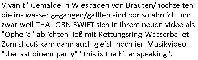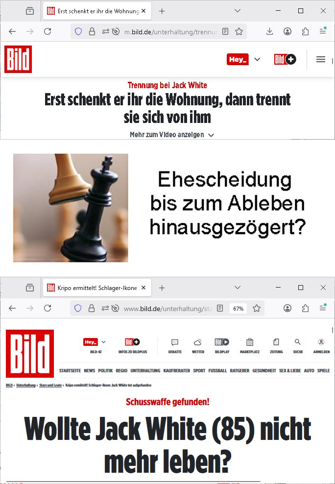 16.10.2025 16:00 Wie hieß denn der Fall aus der Reiterclique-Kita der sich scheiden lassen wollte? Es geht ja ein wenig zu wie bei den #Simpsons die ihre Scheidung quasi seit Ewigkeiten vor sich herschieben find ich und meine mich zu erinnern daß ich Ende 1998 im Hexenkssel mal mit einer "Dame" vom Schachclub oder so gesprochen habe bei dem 3sat #Tatort Pressemeeting die irgendwas im bereich von Jura amchte uninNordduchladn saß, ich glaube das war deiser "Hamburg Rissen" Zeugenschutz(?) - Schüsselreiz/Trigger. And die und ihren Branchenkollegen musste ich gerade denken wegen des "Pia Zadora" Songs in dieser Playlist. Es gibt da ja auch diese #Simposn Folge mit Fern-Schach per Intrenet ? Die russische Großmeister Opposition ? Ich erinner mich noch genau wie mien Vater damals den gefütterten FedeR-Handschuh reklamieren wollte beim Sportpalast oder wo das war wegen halb-"erfrorener Hände" beim Zeitungen austragen, ihn auf den Theresn knallte da er den mangel auwfeise daß man damit keine Post austragen kann. Von wegen dem "Damen darf man ruhig 'schlagen' aber keine Könige - im Schach" #Tatort. https://www.bild.de/unterhaltung/trennung-bei-jack-white-erst-schenkt-er-ihr-die-wohnung-dann-trennt-sie-sich-von-ihm-68e78f0ed3ab2139f9f11549 https://www.bild.de/unterhaltung/stars-und-leute/kripo-ermittelt-schlager-ikone-jack-white-tot-aufgefunden-68f0b76b34e731de12f55672 [schachbild: könig "schlägt" könig] Ehescheidung bis zum Ableben hinausgezögert? https://www.daserste.de/unterhaltung/krimi/tatort/sendung/zugzwang-100.html https://simpsons.fandom.com/wiki/Magnus_Carlsen https://de.wikipedia.org/wiki/Garri_Kimowitsch_Kasparow [0] "202510161600-0-1.jpg" [1] "202510161600-0-2.jpg" |