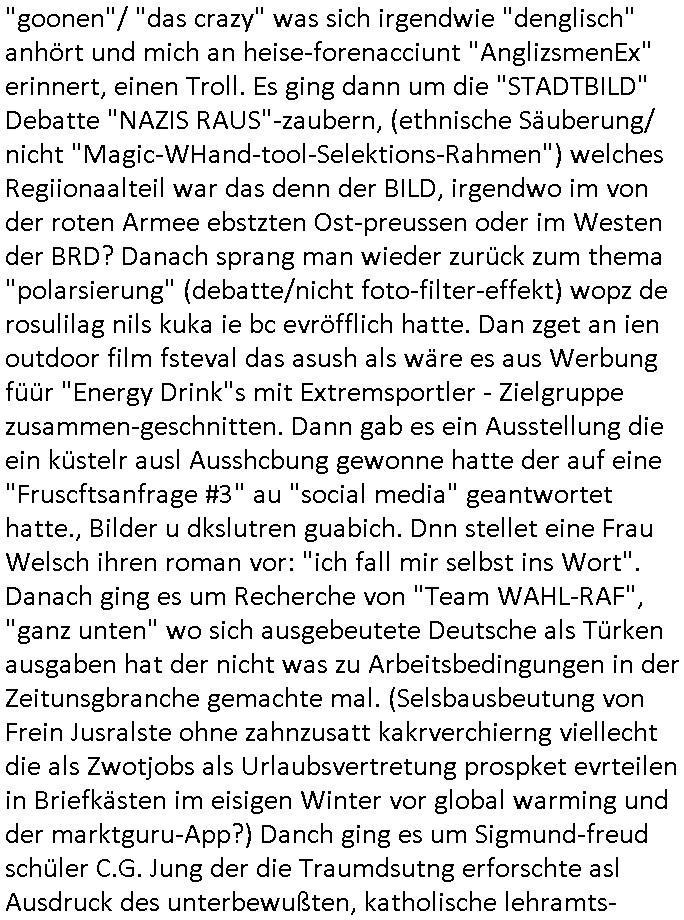 23.10.2025 02:46 ...genau wie beim Kidnapping die Verbrecher. Wi idnesm Haribo Gummibaren Werbespot wo die sgen usn hilf keine Polizei wiel wir slbst die Polizei/Security sind und uns selbst helfen mussen. Mei ragaufne waffschin habensie baer egnasuo uetsrchlagen wie den bsteelltn Frankona jagd Katalog fur klieklaberwffe, sost haet dichder als kleines kind shcon auf dem Schiegstand war meinen peinigern 'angst eine kugel verpasst im recht-fretgen Artikel 20 Absatz 4 Grundegesetz Notstand zur widerhstllug der offentlich-rchststsrslchen Ordnung beim denbanencihterlubten "polizei (und jsutzbaten) - streik". So, nun aber von der jagd auf Drogenvergftungs-verdacht-Mause und dem Filmkrieitk-bericht Cier diese wnaltin di sich mit ihrer eigen mandantin anlegt ud sie offentlich in Podcsts durch den dreck zieht weil sie es moglciehrise auf musik-star tantiemen absgehen hat der betgenmandanzin zum allwerktaglchen Sad.- Fruhstsucksfrehen Screenshot. https://tvinfo.de/fernsehprogramm/2215255681-die-verteidigerin-der-fall-belling https://tvinfo.de/fernsehprogramm/2214751864-suits https://tvinfo.de/fernsehprogramm/2214751866-suits Folter : getauschte VIP-Patientenakte? https://www.medico.de/an-einem-dieser-tage-13587 https://de.wikipedia.org/wiki/Gabriel_Garc%C3%ADa_M%C3%A1rquez https://www.amazon.de/Das-Leichenbeg%C3%A4ngnis-Grossen-Mama-9783423108805/dp/B01N68IG3G https://www.deutschlandfunkkultur.de/groteske-ueberzeichnung-des-suedamerikanischen-alltags-100.html [0] "202510230246-0-1.jpg" [1] "202510230246-0-2.jpg" |