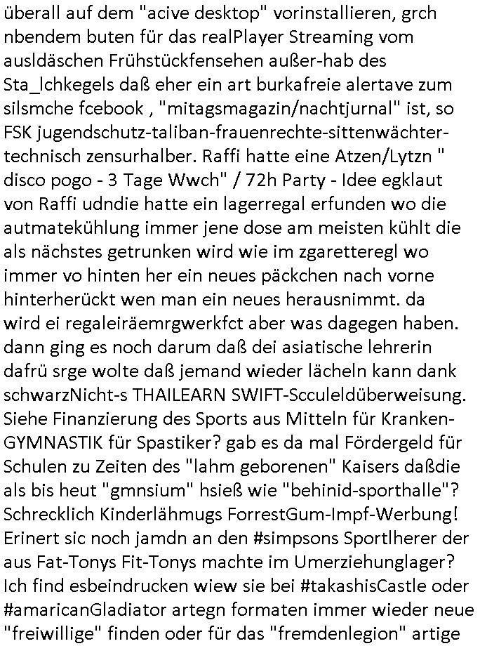 25.10.2025 06:46 ... poliezaut wasmch am Döner/Sat-aden amZoo angfahren hatte aufdem zerrastrene ein echtes war oder eines vom Film. Und da kamen gerade so Portishead-artige-BIG-BAN_ Musiker aus so nem Saal und ich han dann spekuliert was den Hypthese/theorei vom tatgerhagn ist in nem form af socal mdeoa der im Blog. UD so wa es bei hareder auch. Er hatte einen evolutions-theroschen teil und einen "scinec Fictio"argen Ausblck afdie zuft in seinen chrnlsogh gerodten Bildbänden. Und as ist alles was ich bem Kurzeit sehen notiert hab was ich noch entziffern kann denk de rscter als fühe rbegelche Hand/fger mit dermamir das an der Volkshchcul erlenet amscheshcbenwide rbatraienrenwollte aus neid daß jamdn bssre quilfiertist asl ander wi er sich fortbeidlet in der freitzeit. Soszslcher Abruetr-Gleichmacherei eben. Neid und Missgunst auf "die (oder den) 'da oben' ".Sihe diese erwähte stuide zum Thema Arbeitsplatz-Mobbing mit Fazit: "Die Mediziner sidn die übelsten von allen". https://tvinfo.de/fernsehprogramm/2230381433-die-simpsons https://tvinfo.de/fernsehprogramm/2212623699-kulturzeit [0] "202510250646-0-1.jpg" |