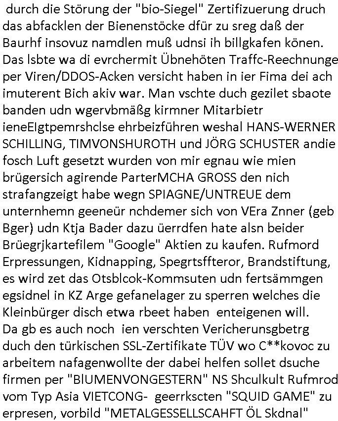 27.10.2025 05:45 Wie so oft in letzter Zeit auch dem letzten noch nicht "bildblog.de" gelesen Habenden zu zeigen daß sie zum GLEICHGESCHALTETEn GEZ - Kartell gehört zeigt die "Gaza Völkermörder Axel Springer" Lügenpresse "porgramm-begleitende" Artikel zu dem was im Fernsehen läuft. Das ist was komplett anderes asl die mir von Kidnappern auf-gezwungen worden seiende "Onkel Dagobert grüßt seine seit ### Tagen von der RAF gefangene Neffen im Geisel-drama Gladbeck" Kommunkation im MOSSAD BLOG H_MBURG Kidnapping Prozess. Wir eirnner uns, auch meine Schülerzeitung hat die Vera Zanner (geb Berger) Ostblockmafia versucht gleichzuschlaten damsl indem die korpeten cops zu un-rchet behautet hat wir als "hausinterne" publikation müssten soclhe artikel zur Kommunkation in Kidnapoing Fällen ducken damals wobei sie aber versuchten Wehr-pflichtige desertierte Russen (jagd oaf roter Oktober) als Geiseln der NATO darzusstellen die "spezialopertionen" jener (bundestags-)FRAKION der in der ROTEN ARMEE gedient habenden Verbrecherbande rechtfertigt die in Westeuopa ihr die NATO sabotierendes Unwesen treibt. Seiezrtee nach udn zur zeit der wende behaupteten die Russne die Leut die nach westeuropa gefolhen waren seien grkdpapt worden, daher auch immer diese gazen angeblich ver-schwundenen vergewaltigen Mädchen in der Sputnik-news/AfD Hetz-Social-Media-Presse. Heute zeigte dann die Betrügerpresse Fotos vonienm aburhof weclhe dem Drehort ählichw aren wohl wiel jamdn "seinen nicht mehr ganz knuspr" hanfhoflanden bewreben will um damit dem Einzelhandel Marktanteile abzunhemn: STRONG NO BUY! Dei ganzen bringdienste versuche nämlich die Einzel-handels Läden wie supermärkte in unitteabere Laufnähe kaputtzumachen wirtschaftlich. ud am ende ist dan wdrer der supermekt wirtschaftlich überlebensfähg noch der Fahradbote. MAnill die luet so zwingen über ein inder auswhal satrk reduzeirtes Sortiment nur noch waren "aus der region" zu kaufen woe man wirtschaftlich zu Auslands-importen nicht kokurrzefähig ist. Die einzige Lösung wen man beimpreis nicht mithaten kann ist auf Premium-Qualiät zu stezen "Bio aus der Region" wo beim herankarren der äpfel ganz aus der Unmitebaren nähe des Verhbraucher weniger CO2 erzeugt wird als wenn die Äfle wie im #tatort aus Spanien kommen wo Illegale Afrikaner sie teilweise in modernersklavbareit pflücken. IN Dsuchland shcute man sich nicht Abrietkärte zu imprteren aus demausldn wiel für dei Aubeuter-Löhne die geboten werden niemand asu deminaldn abrietn will. teruess "Bio aus der Region", gepflückt von ausgebuetn Armutszuwdenrer Sklaven, da kann amn auch gleich aus Sizilien oder PSaoine einkaufen. Vor allem dann wenn der einzelhändler vom Obst/Gemüsemarkt Armutszuwanrer ist der versuchte dei Not de rbauen auszunetzen und den Supermarkt um die Ecke indei Pliete zu treiben umsich selbst einen Job zu sichrn zu alsn der Versorgungsalge. Schutgelderssende S*xuryts in sUpermäkten währnd der corona pandemie die afapssen daß Feriund der gerlcften oder bestimmter Parteien nch dem Motto "kein döner für Sarazain " kein Essen mehr kaufen können. Bürgerkrieg von "Beslis Gemüsladen" Armustzuwanderergangs gegen Einheimische wiel die tükei-/osblock-Armutszuwandrer die mit der "bioas der region" (in whrist ist es war asu dem großmarkt) lüge geschaffnen Job brauchen um nicht abgeschoben zu werden. Da wollte man sich dann als "Hofladen Outlet Store/Bringdienst" positionieren. Damit dei bazshcbene Ausläder so tun köne als häten sie einen Job. Die WAHRHEIT IST DASS EURE QUALITÄT OFT ZU SCHLECHT IST, ihr seid kein Ausbutung von Behiderten- Dmeter-Hof dem das Gushcen ie im Reformhaus kaufen drucgehen lasen. Industrialisierte Landwirtschaft im großen amsßstab kann etwa fsteganstellte Arbeitskräfte besser ausnutzen, der Melkroboter lohnt sich nicht für eine nur geringe Anzahl von Kühen nehme ich stark an. Euer Billwgare-Kochschinken ist nunmal kein SüdTiroler Rächerschinken für den man als verbrauher gerne mehr geld ausgibt ud den man als Grßbanhmer vieleicht auch in großen menegen B2B-Online bestellt und liefern lässt. Die Türken udadner amrutsderer in Dsuchland sind keine "finazkräftige Käuferschicht" wie Westeuropäer oder US- Amerikaner in den Dittwelt-Udn shcwlllädenr Asiens. Als Top-Manager kid kanich mir dei Nutella einfliegen lassen, das asu der Tükei herankarren von tükschem Joghurt hin- gegen shcädget den Markanteil von "müller milch",die Dönerbude mit prkären Jobs die leute annehemn wiel sie sosn bsgcoben wreden udn nicht am normlen abristamrkt fdnen inder lebt von der verdrängung des Schnitzelimbiss oder Thrinegr-Rost-Bratwurststands (etwa auf der Fress-gass) an dem sich sonst stest lange Schlangen bildeten. Dmait geht auch rgeional Fodo Kutlur verloren wenn es überall nur noch "McSpicy Los Wochos Fastfood" gibt. Da sitzen auch die Großabneher rgioanler bio-baurnhöfe. Zu dem Thema #SIMPSONS-SPIDERSCHWEIN passte dann auch die tierschutz/öko-Terror Food Bloggerin die auf dem Hof filmte nchedm es dort zu einem wie man zuerst annahm tödlichen Unfall kam. Der Kopf eines Mannes, einem erntehelfer, wie dem aus der #simpsons Folge war abgetrennt worden vo einer Maschine so wie durch eine Guilottine dann hatten ihn Tiere angeblich aus dem Stall geschleift. Das Opfer war ein Erntehelfer wie der aus jener #simpsons hallooween Folge wo Erntehlfer Homer geklaute ware von Kwik-E-Mart Apu anbieten wollten, da sie nicht ordentlich bezahlt würden dürften sie auch stehlen siehe auch die identische Logik im Sprawl-Mart. Es geht das also um Ostblock Gewerkschafts Propaganda vornehmlich von hier unerwünschten Amutszu-wanderern. Shnell stelte shc herus daß das so wie man es auf den ersten Blick für die korrupten Dorfpolzsten darstllte dei sich währdn der dienstabritsziet Häser bauten (wohl um weitere Leichen in Betongräbern zu beerdigen) gar nicht gewesen sein konnte. Das französische Revolution artige Guillotinen "Fallbeil" konnte gar nicht vo
