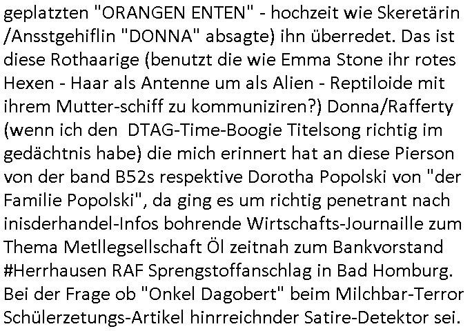 01.11.2025 07:00 Ach gstren, am fritg den 31.Oktober 2025 gab es wieder diese Serie #Suits und ab ca. 16:30 Uhr konnt ich mir die auch ansehen, man zwingt mich ja auch noch ganz andere Kid-napper/Erpresser TV -Sendungen auszuwerten. Mike gRoss wurde im Knast erpresst, und zwar hatte man an-geblich Komprommittierende Selfies von Veghan Markler der Prinz Harry Ehefrau/Freundin "gephotoshopt" und in Umlauf gebracht. Dazu hatten Knastinsassen sie gebeten ihnen Selfies zu schicken udn die Post wurde dann abge-fangen das ist ja fast geneu wie bei der "staatsbesuch Vergewaltigung" der den hasusiter Tükern die Post des Militärs zum Yugo-Brüegrkrioegen an die Schcülerzeitung abfingen (unterschiedsmerkmale fridlibender deutscher und atmwaffefähger brischer Tornados beim Bombarde-ment im Farbeutelattacke auf den grüenen außenmister "Joschka Phisher" Belgrad EIstza) umsie der roten armee zu verkaufen nebst erfundnen PKK-Waffenhandel-Storys zu Brüsslere genralstabs-offizier-autos Fotos auf unsrem Bad Homburg oerb Lernabcher Platanenring Parkplatz. Es kam heraus daß im Bürogbeäde der #Suits Kanzlei zahlreiche Filmsattsisten so tate als würdn sie arbeiten wohl um Kunden/Lieferanten/Aktionäre zu täuschen. Es gab eine Sammelklage deretwegen die Kanzlei all ihre gelder als Schadenersatz zaheln sollte um so Gläubger zu befriedigen, aber bie der Sammelklage fehkte einer der Gläubiger. Der verschuchte per Insolvezbetrügereien sich ien vorteil zu vschffen gegeüber anderen Gläubigern. Der mann tauchte im Büro auf und erpresste duchdas androhen des platzen lassens dess Sammelklage Deals dei zahlung in Form von Comic/Cartoon-Bild-rechten. DAS ERINNERT MCH SOCH SEHR DARAN WIE IM ZUGE DER FAKE-NEWS METALLGESLLSCHFT AG ÖL-OPTIOEN PLEITE BETRÜGER DEN KONZERN UND DIE MANAGER WIE MEINEN VATER ZU ERPRESSEN. Jedenfalls heuter man Film-Statisten an dmitd as Büro nich leer aussieht wen man versuchte Teile davon unterzuvermieten? Was sind denn das für absolut krumme betrüger-touren? Man and neue Mieter: eine nHEDGE (=EDV-HCKE-R) FONDS! Diese Jungs wollten durch INSIDRHANDEL reich werden indem sie geheime Infos der KANZLEI abhörten (etwa an den bürointernen - Netzwerk-Kabeln?) Im Knast wurde Mike gRoss derweil weiter bedroht, er stfa nälich aufs frühere Mandanten die seine Kanzlei eingebuchtet hatte was nach deren Einschätzung auf Fehlurteilen beruhte. Ich teile diese Ansicht nachdem ich gesehen habe wie die Insolvenzbrügerein - Mietverträge machen udn Bild-(urhebrer-)rchte verhökern (di ihen rnicht gehören?) Jedenfafls wurde Mike gRoss im Knast tätlich angegriffen wobei sein Zellenachbar ihm irgendwie half? und nun bot der staatsanwlat ihm einen haftelessungs-freispruch an wenn er gegen diesen als "Verräter" aussage. Man gab ihm sogar einen Tag Hafturlaub damit seine Freundin VEGHAN MAKER (war das die von deiser imLusux-Hotle geplatzten "ORANGEN ENTEN" - hochzeit wie Skeretärin /Ansstgehiflin "DONNA" absagte) ihn überredet. Das ist diese Rothaarige (benutzt die wie Emma Stone ihr rotes Hexen - Haar als Antenne um als Alien - Reptiloide mit ihrem Mutter-schiff zu kommuniziren?) Donna/Rafferty (wenn ich den DTAG-Time-Boogie Titelsong richtig im gedächtnis habe) die mich erinnert hat an diese Pierson von der band B52s respektive Dorotha Popolski von "der Familie Popolski", da ging es um richtig penetrant nach inisderhandel-Infos bohrende Wirtschafts-Journaille zum Thema Metllegsellschaft Öl zeitnah zum Bankvorstand #Herrhausen RAF Sprengstoffanschlag in Bad Homburg. Bei der Frage ob "Onkel Dagobert" beim Milchbar-Terror Schülerzetungs-Artikel hinrreichnder Satire-Detektor sei. https://tvinfo.de/fernsehprogramm/2219091378-suits https://tvinfo.de/fernsehprogramm/2219091381-suits https://tvinfo.de/fernsehprogramm/2219091384-suits https://tvinfo.de/fernsehprogramm/2219091387-suits Kursmanipulation um an Frirmen-Insolvenz-Immobilen zu kommen? TELEKOM DCF-77 ZEIT - STEMPEL https://en.wikipedia.org/wiki/The_Bomb!_(These_Sounds_Fall_into_My_Mind) https://www.bpb.de/kurz-knapp/hintergrund-aktuell/196955/vor-30-jahren-ermordung-von-alfred-herrhausen/ https://www.bild.de/unterhaltung/stars-und-leute/paris-hilton-wird-an-halloween-zur-spears-das-doppelte-britchen-69047e8edf9fa029228eed41 https://www.bild.de/unterhaltung/film-kino/emma-stone-fuer-ihre-rolle-in-bugonia-rasierte-sie-eine-echte-glatze-69023c34fa1876cd16274554 https://de.wikipedia.org/wiki/Evolution_(Film) https://www.fernsehserien.de/south-park/folgen/11x03-laustrophobie-103057 https://www.tvinfo.de/fernsehprogramm/2202975619-south-park [0] "202511010700-0-1.jpg" [1] "202511010700-0-2.jpg" [2] "202511010700-0-3.jpg" [3] "202511010700-0-4.jpg" |