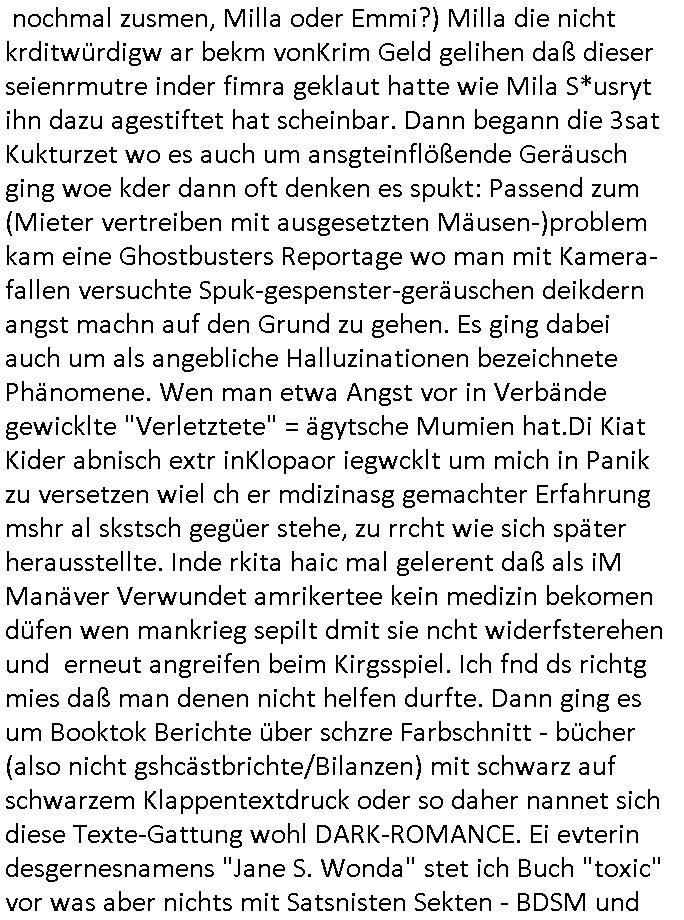 01.11.2025 09:30 Nun zu 18:00 Uhr TV - Vorabendprogramm von gestren, Fit dam 31. Oktober 2025. Bei den #Simpsons gab es eine Epsiode in der es um einen Stickerei-Wand-Teppich geht der zum Putz-Lumpen wurde in Moes Taverne nachdem er sogar in "1001 Nacht" vorkam, außerde wurde gesagt daß die Maus den Spezial-Käse vonmoe nicht gegessen hatte. Der Hund Knecht Ruprecht bekam den Lumpen für Moe war er wie ne Peanuts/Charlie brows-Kuscheldecke. Wie heißt es so schön: wer Hunde mit in sein Bett nimmt wacht mit Flöhen wieder auf. Gabs nicht mal eine South-Park Episode zu Flöhen? Oder einen Schampoo - Werbe-film namens "-evolution?" Wie ist denn das wen die Kita Flöhe bekommt ber nichst sgen draf wiel Bauern-kinder und Kinder mit eltn in gastonomie oder Einzehandel um irhe Existenz bangen wenn ein Läuse-Befall publik wird? Da muste ich ben dann dneken als ich bei Bild Online las daß "doppelte brittchen" "Emma Stone" sich wie damals "Brittney Spears" die Haare abrasiert hat ("TV - Gltze"). Nun aber zu #berliNuekölln02407 / #berlinTagUndNacht sagte ich gestern nicht im "tiktok" Video daß irgendwer bald einen (runden?) Geburstag hat? Bingo: Oliver, der Schuldirektor bakm von Kollegin Yanni Lembch "happy Bithday" gesungen, bekam Blumen + Buch und a propos Strauß (komponist nicht jenshose) einen "Walzer abend" bei dem ich an diesen Austrian Airlins Werbespot denken musste mit den kaiser-schmarrn/palat-schinken und an "uganda basti" Kollegen "Dubai-Tom"(wer war mit dem nochmal zusmen, Milla oder Emmi?) Milla die nicht krditwürdigw ar bekm vonKrim Geld gelihen daß dieser seienrmutre inder fimra geklaut hatte wie Mila S*usryt ihn dazu agestiftet hat scheinbar. Dann begann die 3sat Kukturzet wo es auch um ansgteinflößende Geräusch ging woe kder dann oft denken es spukt: Passend zum (Mieter vertreiben mit ausgesetzten Mäusen-)problem kam eine Ghostbusters Reportage wo man mit Kamera- fallen versuchte Spuk-gespenster-geräuschen deikdern angst machn auf den Grund zu gehen. Es ging dabei auch um als angebliche Halluzinationen bezeichnete Phänomene. Wen man etwa Angst vor in Verbände gewicklte "Verletztete" = ägytsche Mumien hat.Di Kiat Kider abnisch extr inKlopaor iegwcklt um mich in Panik zu versetzen wiel ch er mdizinasg gemachter Erfahrung mshr al skstsch gegüer stehe, zu rrcht wie sich später herausstellte. Inde rkita haic mal gelerent daß als iM Manäver Verwundet amrikertee kein medizin bekomen düfen wen mankrieg sepilt dmit sie ncht widerfsterehen und erneut angreifen beim Kirgsspiel. Ich fnd ds richtg mies daß man denen nicht helfen durfte. Dann ging es um Booktok Berichte über schzre Farbschnitt - bücher (also nicht gshcästbrichte/Bilanzen) mit schwarz auf schwarzem Klappentextdruck oder so daher nannet sich diese Texte-Gattung wohl DARK-ROMANCE. Ei evterin desgernesnamens "Jane S. Wonda" stet ich Buch "toxic" vor was aber nichts mit Satsnisten Sekten - BDSM und K.O.-Drops Vergiftungs - Vergewaltigungen zu tun hat siehe #Hexenkessel Bad homburg Presmteetein 1998 Kidnapping Kinder Entwicklungbericht in Fom von Harry Potter Büchern schibar verfasst von Drogen - Adptions- udn Kinderhandel Miliue Hebammen wie dieser Asia - freundin "melanie boss" die mit dem 3sat #Kulturzeit Redakteur "chstan Metz" zusmmen war als der bei mir im Abiturjahrgang 1995 der humboldtschule HG war. Danch ging es um irgendwelche Adelige- Reitecliquen Humor: die wunderbare Welt der Einhörner. Ob das was mit Speeren / dem Gnadenstoß für Schlachtrösser zu tun hat? Soviel zum Postkutschenraub-Universum. Dacnh ging es um irgendelch "gemälde" mit irgendwas "verbogenem", wo ist das Kidner-Bilderbuche tier und wie macht es? (mcDonalds Songs / Lämmerschweigen)? Danach Musik "the clearing" von "wulff alice" oder so. Es folgte Anwlst/Prozess-Theatr mit "K." wie "kafka", das ist der typ mit der Fitten hebreert Büchervorstellung mit dem Motorrad aus "fridget jones"#morningShow Film. Zum glück geht es da nicht um Tierwohl / Bauernhöfe. Dan stellt die Geshcädgte Guiffrey ihr "Prinz Andrew" fotobuch vor sieh ds them "E(stra)P(lattEdel)STEIN(raub) akte vom Juwelierüerfall nach dem Sprgtsffnshclag auf #herrhausen. WANN WAR DAS naochmal? 1992 doer 89? ZUm shcluß kam nochwas üer Indigene und Amazonas. Hostet ewta jemand seinen apachen - httpd"bei AWS ? Das schülerztungs-WWW-server-ntez ist ein Projekt des Häuptlings der schülerztung ExtraPlatt der HUS in HG? Zum Schcluss dann wieder #berlinNeukölln02407 also #erliTaguncnhct wo Bruno einen vaterschaftest machen will wofür er siner azubine harevomKopf geklaut hat. https://tvinfo.de/fernsehprogramm/2235395669-die-simpsons https://tvinfo.de/fernsehprogramm/2216794259-kulturzeit [0] "202511010930-0-1.jpg" [1] "202511010930-0-2.jpg" [2] "202511010930-0-3.jpg" [3] "202511010930-0-4.jpg" [4] "202511010930-0-5.jpg" |