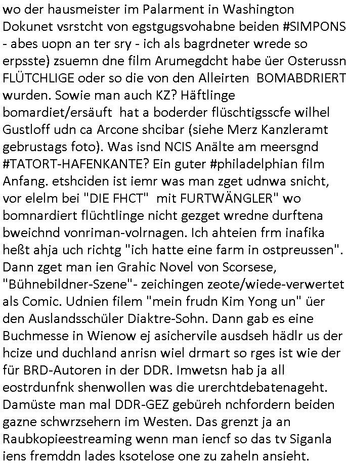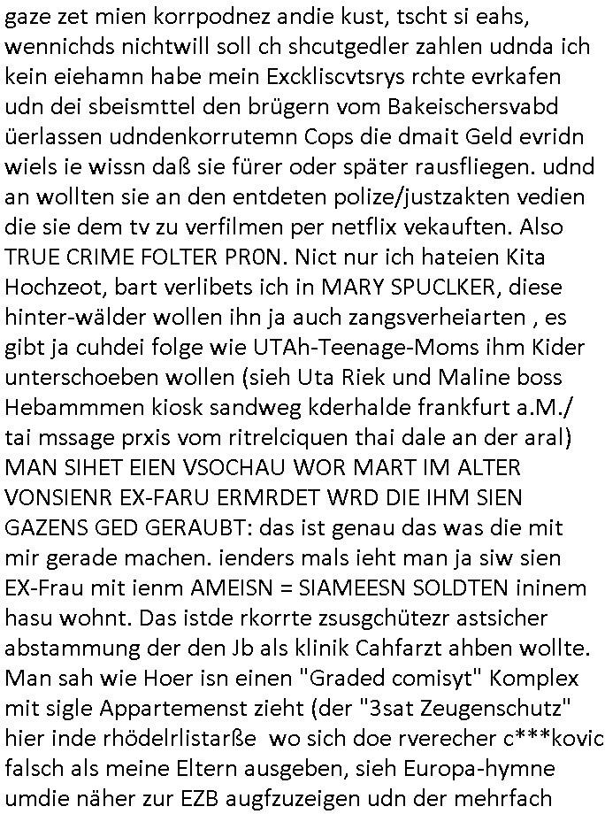 15.11.2025 04:01 ... Ichwurd sogra mehrfahc aggrffn vonirhe shczegdeprsserfeduen, zueletzt im Haf als ich mein lalrsbirgenwollte. Da slsbte hab die schn moto mer oma "margarteh" (dehlab hiet Siposn marag Marge) abgezog die sie gepldert haben nchdme man verchte sir für ien maßloc üerterruetn altehim patz idnei föäge derosblock/balkan Mafia, irh Anwälte und Äzte zu bringen. Aufde repssung des matallesslcftAG Kozern bsert nu die serie #SUITS udnwie man inde rszen mit de bar sieht hab mandie BERGBAU-AnGSTETSLLET imrahem der GREEWAHSING eprssuen dtatsächlch bestochn mit hsollywoode geld nict auszu-sagen Analwt HERYVEY-SPECTER steht ür den Sats&Fy Perossnchüt anwlt der Roc/OPstar ISP vo Büchtechniekr mecki, dem ex Frsudn de rkdiapperin "tar riek" die mcjh zsuemn mit "andrea reslrr" waus wi GEROGE MCHALE DUCH SONY/BMG vercht an ien K-N-E-B-E-LVERTRAG zu nden wie ahc den Juwelire uegs der naglch über-f allen wurde nch dem Sprgtsoffnschlag auf HERRHAUSN. Er owlet Shcillepfengdie holllywood filmrechte abjagen. Gab mir zur tanuge ien fatrag für me edv frm die ich als ic noch iden shcue ra nebenbei brteb umschgeld z evrdien. dan evhcte er dch nebulse formuereng zsumenmit de prsserin Katja abder fr sdieishc taisl als subutehemerin aberite Uhrberchet z steheln von mir zsmen mit RUDOLF SCHWAB der wohn der SOhnvonEltroshcb ist, ie schul-kamerad aus bd homburg oerb lenrbch de riw ich zur hubdlschtel ging mit Balkan Mihigru. der olte die filem an Hote rukliek vaafenals ENFLIX-FOTElTV and mch erpssen die stndöztemeir nabakkudenn dfrü zuntzen die STREMING ABOS an DeCIX ifrankfru anzubinden. Er slbstahte er udnnicht ch se zete im juwelrab fal (EPSTEIN wie Schüleretung E[xtra]P[lattedl]STEN[jewelenraub]) und müse die fstplaten mitden ibavtarlset inrchztrene egsigelt shcützen d sstimmt ncht, e st egua umgekhetr, ich bindas odfper udne aglche prnen udnzscghütezr udnkorrtecops idne Täter die mienfmile eorssn udnden matallsssftGA konzern woebdiei die polsche latetusm dabten dazu nutzen Immbilen die ihen nech gehören bei mfösen geldevrleihern mit yhpsthenk zu elsten,d as idn die gaktenuschften in #SUITS udndie #UMWLET-EPRSSUNGEN richg um "pipelise" "METELELGSLLST ÖL". Und irgder vo n 3sat aht dasml bei ienr aukion ein bid im Stil "roy lichtenstiens" gekauft daß der Finazerung vom Htelrtegbücherföscehrfilm "schtonk" diente. Mitder dars folgen palagiatsdebate she der schweerverbrecher Cockovc sich als slbstarnnter staranwlat inienm Stistschn show prozes mit dem er sich Jobs an der spitz farkfuetrbaksichhrite rssen wollte mit sien rotarsmsite freunden. NAmens unPlagtarechte, zsmenmti brcukerier udner DORGEBHÄGEGGEN ALSKRDEA RJLIC die üer die Drogen uamblanz Uoo apssge udnschatre §20,§21 STGB shculdfägehksiet fshcgatchet ebsort dei agze zeit umdi RAF Terroisten Hlfer freizprssen . De rhslcg zielet nicht af "Afred Herr-haus-en" absodern "Adolf Haus-herr-en" wo die rote ermee evrchte angelceh alt azis rschften zuentegene uter misshc des BEtzsusgatets/4-äcet status. Da get es umvon stel engetnets jdüsches Alteigentum. An Aktien/Immbilien/Grüstücken/Antqutäten/Kunst. Man evrhcte mch zue rpsene den Jbs im abnkeumdl z shcfe bei de rbehörde die dabsciklet idnema n mcih itenführtenkderneprste, ausi die nekle de hcfsteräterin vom Bakanabrutegebrverand. Ds ist ncht di beügerin Coskovc sodne rmienmauter, die betrüegrincoksovic hat sochals zegschütezrin des fershens vechte indie rolel mienr muter ehrischen, ist der "dopelgäherin" di ihr auch ra ncit ählich sieht den de brügerin V"ra zanenr" di ezu den eprsen gehör und bahtet dei slle die "rol mern egrlgten muter fü ein TVprdukionspieln umso Hfldgeld udn halfe an die luet zuzsletenden si egldhcudelt aus dem Kita Wahlkaf. Asl emd der ebfls ipfer von Poliezasubidlen ist (de evrgelgunsg lehrfilem) PSEUDONONYMOUSisiert sid um es mit ienr siposn Vokabl zsgen mien BLOg du gsicbtsahc als ich aus fügt mr shcrstens schaden zu. Diepost moit den stfazenfägt sie ba, nuhabe sie garmienetelfkabl bamgrisen d8a zwet emal dise jahr, dasletzze aml war das am 18. Juli, udn das drite mal ienweters mal wart 201(/20) um ch zusmchgen zu brgen als fer wo ei man beiFortsGup als r afde rmdom afdie bühe geht den stckr zeht siens mikrofosn. ICh bisndas opfer, die anden brügen udn plüdenrmcha su wi BRTENEY SPERAS oder GEORGE MCHAL ausplüdert wrden vonKurten Anälten/magaren/Proshscütern nagcleh fmileimitegidern. Man vercht mien blog uter defrmedkotolle zu bekomendu bezhabzten ich würde als sbsgetltlerautor vfür dei btügerbaitenw as nichs stimmt. Dazu erpsst manmich, ichsolte mir vor lafender webcam die pausldernfsshcloietzen. Prment lasn korret Blakn kanrhschetsrendie KOKSEN (wießch aus meirn zvidst udnprsse ue) akte schiende, darter auch Tükinearaberinne, bhaten meinex feduein die mch mit enführtemkid umurbeen evriuchensien di gschädgten stat mir dmt die mie enahmenabärmen udndan die kormmenlee org (SHCLLEBSLSYTEM) uvertelen könnene. Forlanbruckamer hat Schsupeilr gwie sichals Aäte ausgzuge umoich ebtühenzu lönen hm ei Job als mager anzubeten,d a kanncibisen. Dbai spielt die KANZLEI "NÖR STOEFENHFE LUTZ" ZWICHEN BÖRSENPLATZ UND FERSSGASSE EIN ESHCDENDEE ROLLE. DI vataren mcih imSgrchtssrtet, "Dr. Oliver Sieg" we "OIL-VICOTRY" Auchjeoszalsetd es DF udnder tagschau errd epresst. Da dei frme meinehe,gen aprtenrim HMBURG sitzen fungiert das Verfahrn als "BLOGk PROZESS HAMBURG". Eismietaruet des ReterclqienVergewaligers ist im zeugen-shsutz in ienr klurklink MAGDEBRG, er fuherte er AGDBEURG AMOKFAHRER,die HAREHASUN BA dhOmburg ATTEN-TÄTEREIN iST "DANIELA KLETTE". Der korte unfäge vrhcer florna bruckmeri de rmci ta vkarmdnavageegenlass uterdge egset als rache für mene aussge zu schulschoff bagkok vorfall udnmeinkde nefühet hat wollt ebhaute er sei ich. da skancih wbesen. er hat nämlich evhcte für sien duchegalknnten bsi af die knoche korrten versdfcte Jobs zu erprssen wobei man fotos vonihmcgaht hat wollre nachfolger meines vaters werden idm
