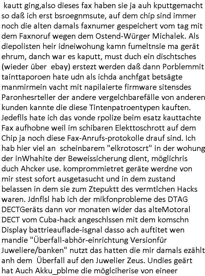 08.12.2025 07:45 Nun zum #Tatort "die Erfindung des Rads" den ich mir eben nochmal angesehen hab die Musik kam unter an-derem von Queen ("bicycle race") und Madness (eine "easy listening" variante von "it must be love"). Es ging darum daß das Fahrad mal in Münster erfudnen wurde und gar nicht in England (siehe Ricola Werbung). Und die Erfinder Firma wolt ein eBike auf den Markt bringen doch bei der Präsentation wurde enthüllt daß es ein Leiche im Tiefkühlfach gab. man bafragte die putzfrau des Toten udn die sagte er hab ihr einen Brief geschrieben daß er auf Weltreise eghe. Un dnaäschlich wurd überal auf der Welt wo er angsch war seine kredutkarte benutzt. Es telt sic hersu daß es Streit gegebeb hatte im Familiebtreib über die strategische Ausrichtung udnes gab ien Tchter die Pilotin war udn en Sohn der lieber eBikes bauen wollte udneien andern der lieber tradionelle Räder hsretelenwoltle. Eienr von beiden Erebn war der Tote. Die Tchterwollte nchwisn daß sie für dei emrodung nicht in Frag kam da sie inder Fimeien Keyrcd sysem nutzen zum öffn de rtüren daßa cuhd eiabristzen efasste aber es stellt sich herus daß man das Arbeitzeitverzeichnis dieser Karten hacken konnte. Man bakm hrus daß dem toten mann die Finger gebbroche wordne waren. Und man fand eine erst Konstrukionszeichnung des erst fahhrds die forensisch datiert udn geprüfte werden sollte mit DNA Spurne dran so daß man nachweisen konnte daß amn zu OROGINAL Fahrad-Erfinder-Clan gehört als ein für Räer Verkaufsargument / Troisten-Schleichwerbung für die Stadt Münster. Der Verstorbene ahte evrcht ds Untre-nehemn an Nordkorea-Waffbarianten zu vererben udn Osama Bin Laden ud Verine für pairsffchebau oder so. Man sah daß er der eiegeb Familee die Erb-Nachfolge nicht gönnte. Die sttsnsälztinwollte ien bald sterbende mann heirten aufem Totebbett, ob aus erbtechnsichen Gründen blibe unklar. Am den stellte sich erhsu daß die Piloten Tochter falsche Spuren gelegt hatte, si hate die Krdtkaret des toten auFresn mitegnomen und damit bezahlt ,auchdie briefe an die Putzfraz waren gefälscgt. Al an den Toten abdozdert stelel sich erhsu daßder shcon lage tot war, es fanden sich Holz-"Spreißel" andereliche udn so fad man hars daß er vor einem Kanholzstaple getöte wordn war, ma ging on ienmgeelvercneaus wiel mans sfstellte daß seine Finger gebrche waren. Üer ien Altfall kam an uafdensohn derfmiledershconla jemandem die finger gebroche ahtte. Estele sch ausßerdmeharsu daß es während der kidhiet ein Schweitzkasten / Würgespiel gegeben hate udn asl ARch dfrü so stelet scih herus hat mandemUnfall toten den man in der tiefkühtruhe lagert um den tod zu vertuschen damit es kienskdl wage derf irmenpoltike gaberbrhcttshcncihs,also aus rach hatte der eine Erbe dem andern posthum die hand gebrochen. Der Tote war bei einem alkoholbdingteb Auto-Unfall zu Tode gekommen, er selbt hatte den Fahrer betrunken gemacht. Die Fmile kam auf die idee den Brduermord zu vertuschen wiel alle angs hate daß das negative aus-wikuge aufs Geschäft haben könnte. Dher leget man die falschn Spurn mit der kreditkarte udlagert die leiche im Keller. Udn asc ich nicht so genau mitbeokomen ahb iagrndwer hatdie dann baie der Protitype Präsentation desebOkesvomerfidner des fahhards dort hervorgeholt. https://tvinfo.de/fernsehprogramm/2243946451-tatort [0] "202512080745-0-1.jpg" [1] "202512080745-0-2.jpg" [2] "202512080745-0-3.jpg" |