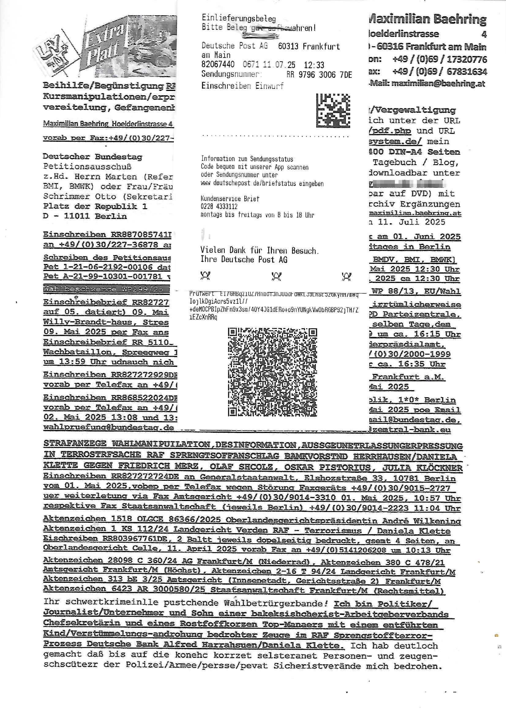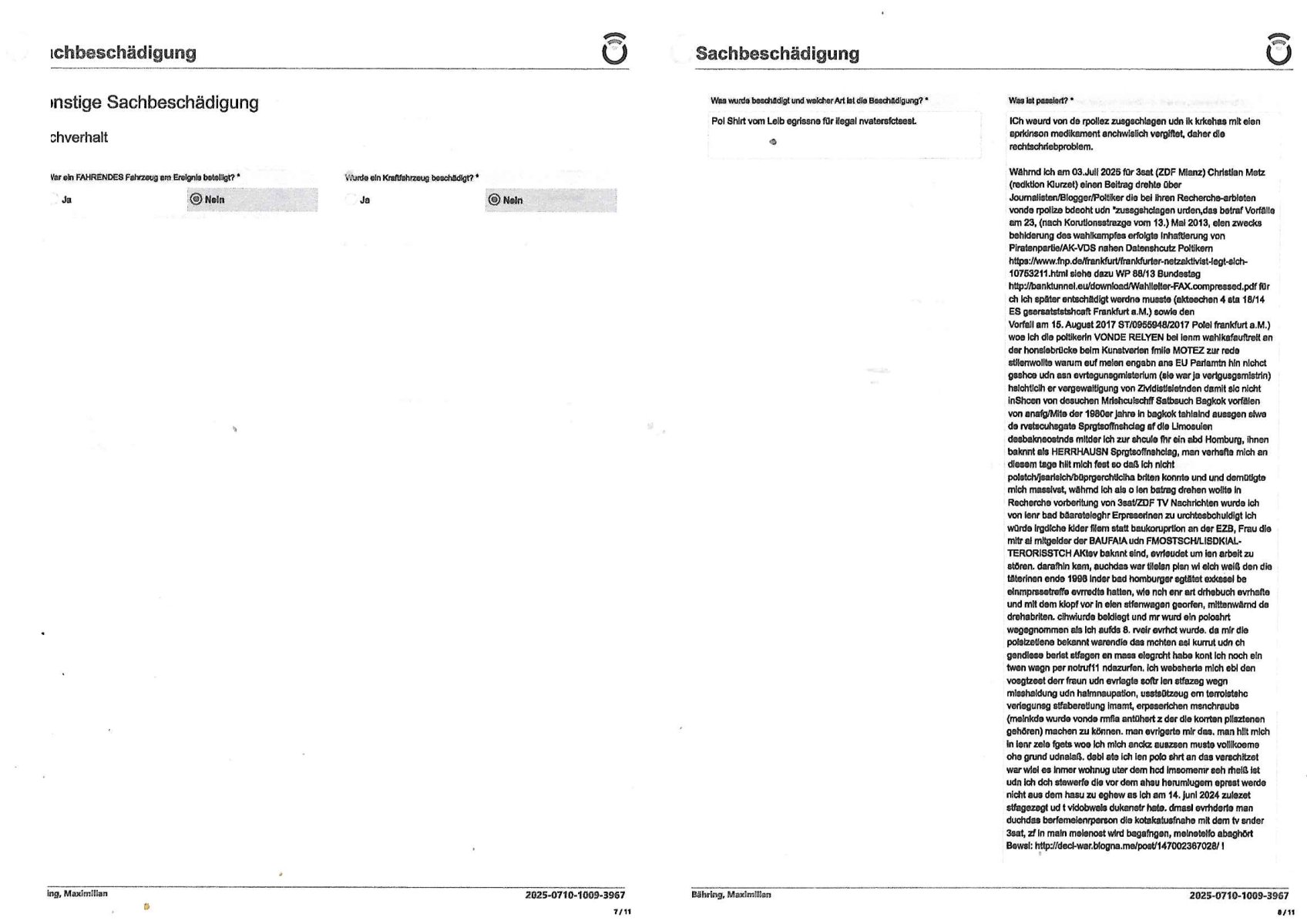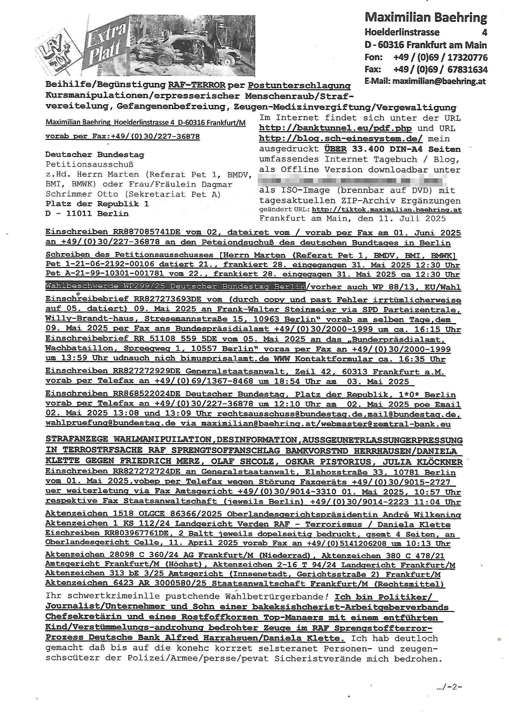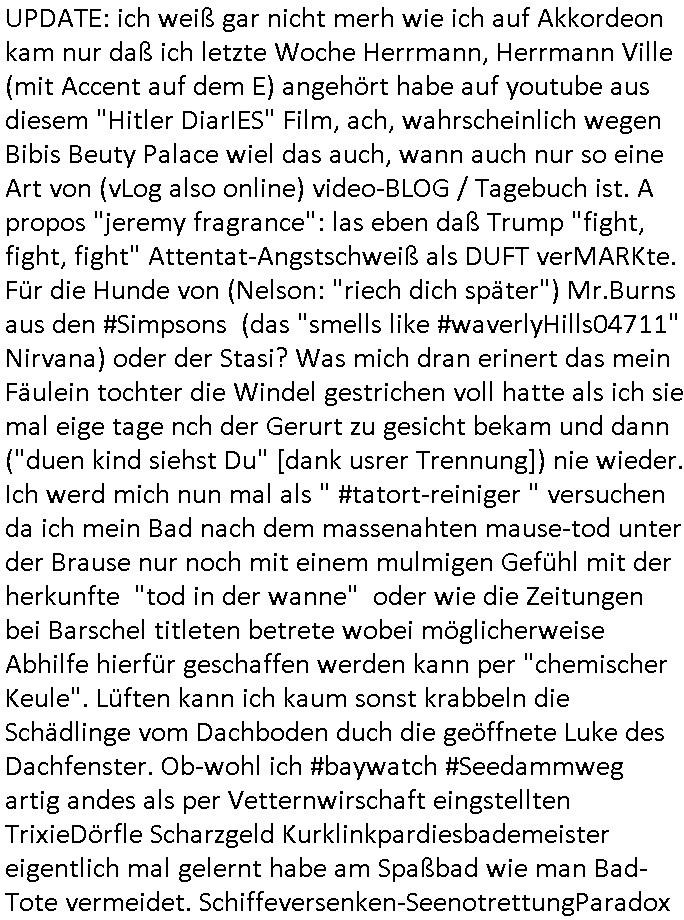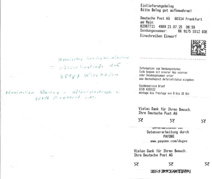 | Das Vido heute mal mit Bild Zeitung Online anstatt Bild - Zeitung. Im Supermarkt waren Leuet die sich gegenüber der Kassiererin als Bullen asugaben die angebliche, so sie bei irhem Ablaupflan/"Dehrbuch" bleiben mit KI gefakte die Fahundugs-plakate aufhägen wollten (Rufmord, gegen Rekaterue/Journalisten/Blogegr die bis auf die Knochen korruppte Bullen strafangeziegt haben, versteht sich, wie immer) und um die noch irgendwie filmen zu können habe ich mich sher beeilt an die kasse zu kommen dieses mal um itzubekomen was da gesprochen wird, es ging aglich um Raub. Ich habdi kassirin gewarnt daß die korrupet sind und sie sich die Ausweise zeigen lassen soll und daß die wenns wirklich mal echte Probleme gibt mit RAF Terroisetn/Juweleraub die nie ihre Arbeit machen. An jedenm Hauseinag in den dieser 3sat "christian Metz" Doppelgäger/Lookalike /Double verschwunden war da lauerten die Jugs dei als ich i dne Supermarktriging dort gdtenden hatten udn es fhren zehriceh wgen mit Kenn-zeichen WI herum, darunter ein "Roadsurfer" VW Bully mitien slstamn hckabcubeu. Die Oassanten meinten die Bullen wollten leuet einschcüchern die den Waschsalon wollen udn auch ich hate den eindruck daß diese ganzen Polizeiautos eher den Sinn hatten Zuegn uezshcüchtren. Denn es ware noch weitere Wagen unterwegs, insgesamt drei Stück. Eine parket am Zoo, einer fuhr am Waschsalon entlang (Aufschrift "Justiz?" als ich mei einkäufe bezahlte und der dirtte bog am unteren Ende des Sandwegs in