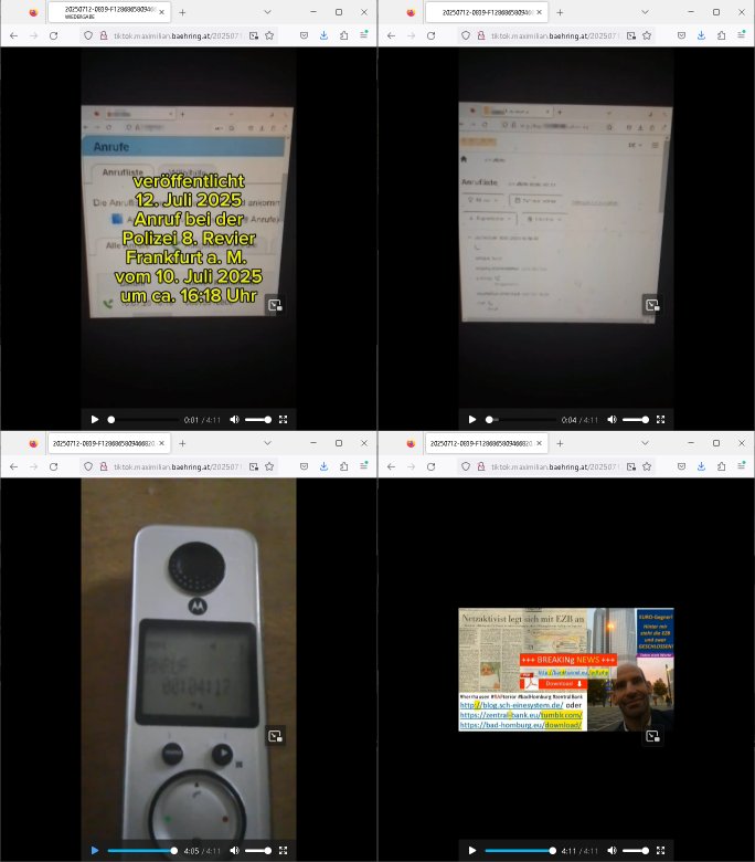 | Nun wie eigentlich immer Montags zum #Tatort Krimi vom gestrigen Sonntag, dem 27. Juli 2025, "Katz und Maus" war der diesmalige Titel. Es ging um nen vLoger also Video-Blogger/tiktoker/youtuber welcher ne Geisel genommen hatte. Er war Anhäger von Verschwörungs-theorien glaubet die Ossi-Polizei. Er sendete ein Video mit der Geisel und ein Ultimatum. Er verlangte daß die Polizei sich um Fälle verschwundener Kinder kümmern solle. Er stellte dabei "STUMMFILM" Rätsel auf als handle es sich bei ihm um den serbischen "Chaplin-Immobilien" Verbrecher der die Rückgabe von angeblich von den Nazis enteignetem jüdischem Alteigentum mithilfe gefälschter Urkunden verlangt. Wir erinnern uns: an der neuen EZB Sonnamannstraße Frankfurt a.M. bot eine Firma Wohn-raum an die "chaplin(-)immobilien"@"g(oogle)mail.com" asl Emaila dress hatte als hande es ich um den serbischen Trickbetrüger dessen Komplize am von Bad Homburger Firmen gegürdneten KyleRex iXp bei AS6939 arbeitet und sein Informatik-Abitur an der Humboldtschule machte in Bad Homburg. Die Informatiklerher beschwerten sich daß sie einen mit durchschleifen mussten wei er sons ind en damslitgen sebrichen Bürgerkrieg abgscobenwordn wäre. Er machte bei bgp.he.net die Statitiken die beeisn solltn daß der ARPA/Intertent hauptnutzer US-Armee/DOD ist. "Chaplin" ist hierbei der Gnagste-Coder für KLAUEN wie RAUB also gleich CLOWN. Und wie wir wissen ist her im Haus Hölderlinstraße 4, Frankfurt a.M. die Rote Armee