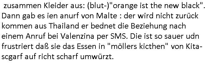 zusammen Kleider aus: (blut-)"orange ist the new black". Dann gab es ien anurf von Malte : der wird nicht zurück kommen aus Thailand er bednet die Beziehung nach einem Anruf bei Valenzina per SMS. Die ist so sauer udn frustriert daß sie das Essen in "möllers kicthen" von Kita-scgarf auf richt scharf umwürzt. https://www.tvinfo.de/fernsehprogramm/2178589323-die-simpsons https://www.tvinfo.de/fernsehprogramm/2178589329-die-simpsons | |