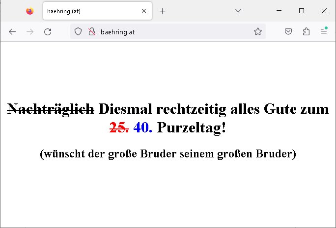 (wünscht der große Bruder seinem großen Bruder) http://baehring.at/ (auch von Asien aus http://baehring.at.jp.banktunnel.eu/ ) | |