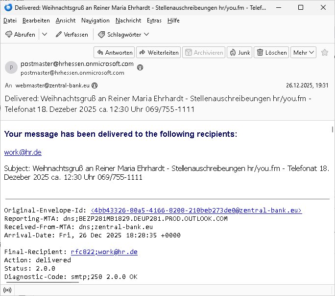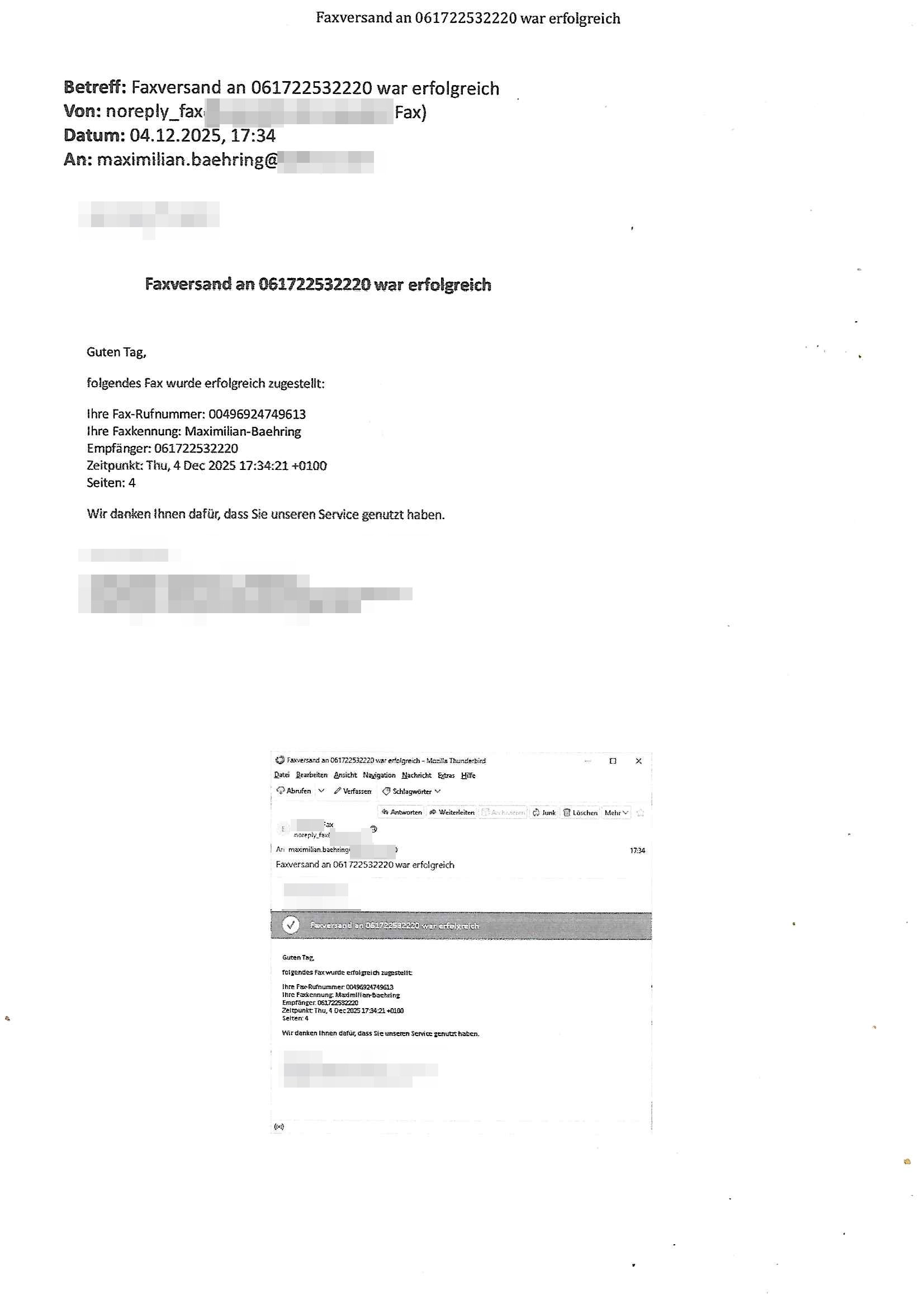 Betreff: Faxversand an 0241568372991 war erfolgreich Datum: Tue, 02 Dec 2025 05:52:44 +0000 (UTC) Von: Fax <noreply_fax@> An: maximilian.baehring@*** Web2Fax Faxversand an 0241568372991 war erfolgreich Guten Tag, folgendes Fax wurde erfolgreich zugestellt: Ihre Fax-Rufnummer: 00496967831634 Ihre Faxkennung: Maximilian-Baehring Empfänger: 0241568372991 Zeitpunkt: Tue, 2 Dec 2025 06:52:44 +0100 Seiten: 1 Wir danken Ihnen dafür, dass Sie unseren Service genutzt haben. | |