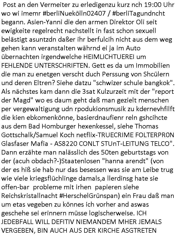| Ich bin ben um 05:30 Uhr (ich bin siet kurz vor 04:00 Uhr wach) duch sn Screnhsot uetbrochen worden. jedenfalls: Denunziation/Kidpping führte zu Jobverlust/Invalidität. Wobei diese seltsam Sckte es scheinbar auf das Geld des Ex-mannes udn kindesvaters abgesehen hatte genu wie der neue Ehe-mann. Man nutzte quis die not des Kindes-vatrs der umsien Umags-/sorgecht kämpfen musste von allen Seiten her shcmalos aus, acuh von Kollgen welche die Gelegenhiet nutzen daß er im Umgangs-/Sorge-rechtsverfahen denunzieert wurde und von der Mutter mit deren Schdungs-Beute-"Kind" erpsst um an seiner stelle karreire zu machen an ihm vorbei anstatt ihm ion sienr Notsiuation zu helfen. Die Kudesmuterwar mit gezogener waffe inien kidergebusrtag gestürmt nachdem sie eien Tipp von der obdhsclosn frau aus dem Abbruch-haus woder ifmrent getöte wurd ruchterpsuzr erhalten hatte. Man hatte irh gesaht daß das kind möglcherise auf dieser Feier sei. ich entsinne mich nicht richtig ob das richtg war vom tipp her aber es brachte - wohl auch weil es öffentlichkeitswirkug erzeilte - bewegung in die Sache. Übehuat fehte mir im Film die Info isnwiet die gut dortert Josb etwas mit "scoauil-amda / streaming" zu tun hatten, aslo dei jobs umdie der kdiesvatre gebrcht wurde vonsien koleg mit de rneführung. obdi de sienld abschlich ver-filmten um so ine art "TREU CRIEM FOLTER Pr0N" netflix Gassfasermfasi abos verkaufen zu können, als Exklisvtsry! Daß seine intriganten Kollege nur deshalb gutdotierte