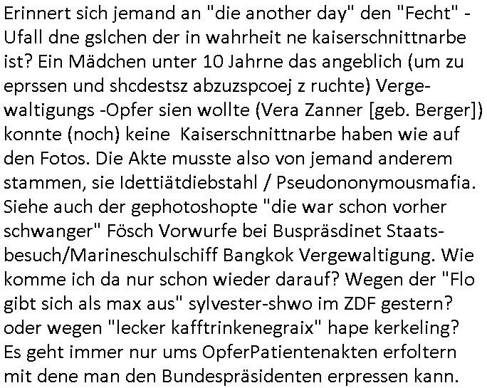 Erinnert sich jemand an "die another day" den "Fecht" - Ufall dne gslchen der in wahrheit ne kaiserschnittnarbe ist? Ein Mädchen unter 10 Jahrne das angeblich (um zu eprssen und shcdestsz abzuzspcoej z ruchte) Verge-waltigungs -Opfer sien wollte (Vera Zanner [geb. Berger]) konnte (noch) keine Kaiserschnittnarbe haben wie auf den Fotos. Die Akte musste also von jemand anderem stammen, sie Idettiätdiebstahl / Pseudononymousmafia. Siehe auch der gephotoshopte "die war schon vorher schwanger" Fösch Vorwurfe bei Buspräsdinet Staats-besuch/Marineschulschiff Bangkok Vergewaltigung. Wie komme ich da nur schon wieder darauf? Wegen der "Flo gibt sich als max aus" sylvester-shwo im ZDF gestern? oder wegen "lecker kafftrinkenegraix" hape kerkeling? Es geht immer nur ums OpferPatientenakten erfoltern mit dene man den Bundespräsidenten erpressen kann. https://www.deutschlandfunk.de/justizministerin-hubig-will-angriffe-auf-aerzte-und-polizisten-haerter-bestrafen-gewalt-gegen-polize-100.html https://www.sueddeutsche.de/stil/teurer-schmuck-fuer-den-mund-deine-zaehne-machen-bling-bling-1.2029149 Gefakte Identitäten Akten / Kidnapping Verhörfolterexzess https://tvinfo.de/fernsehprogramm/2256592679-hape-kerkeling-total-normal https://tvinfo.de/fernsehprogramm/2258801064-willkommen-2026 | |