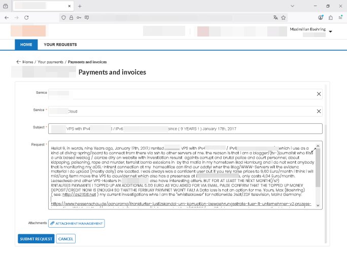 | bei mis ist heute morgen schon wieder der VPS Server frü mein Blog im Moment des hochladens / abgleichens von Daten (nach dene ersten zwo Vildern) sabotagebedingt in die Knie gegangen von der Anbindung her wieder nur teils erreichbar. Eine unglaubloche Frechheit. Es gibt hier ja zunehmend LOW COST Rechenzentren wie interwerk betrieben von irgendienr (Achung!) "ROTORfly" Firma die sich ne Faser zum interxion Digital Reality / Siemens RZ gelegt haben wo in der Hanauer-Land- 30X dei WISAG in gazer Kasernenstärke sitzt was den Wachschutz angeht. Für alle die nicht vom "Ordungsamt"/"KleyReX" Skandal betroffen sein möchten die "millionenschwere Korrution bei der beschaffung von Justz/Polzei EDVIn Frankfurt/M. " ist es besser nicht dort zu hosten/routen wo Frankfurter Ordnungsamtschefs Büros quasi im DeCIX-Ring-Knoten- pukt Rechenzentrum haben. Hanaur-Land- 29X oder so in Richtung DKRZ Offnbch raus ist da im Moment wohl die bessrre wahl woebi ich mich frage ob dieses neue(?) "Tornado" RZ nahe SAP/Flughafen und BFS in Langen da am Privatflughafen Egelsbach in der Nähe ne gute Wahl wäre wenn man für ne zeitlang vom Hautpbahnhof mit der GPS/Rail Arcor Infratruktur weg will staatsanwalt- licehr Ermittlungen bedingt asl AntiKorruption-Journalist. Nord-West Frankfurt Kalbach wollte ich ja "aus Gründen" nicht (siehe der "Keppler RZ" Verkauf artikl) auch Nord- östlich von Frankfurt gibt es ja Peripehrie - Datacenter. Hatte gerade mitei nem Typen zu tun dessen Name mir
