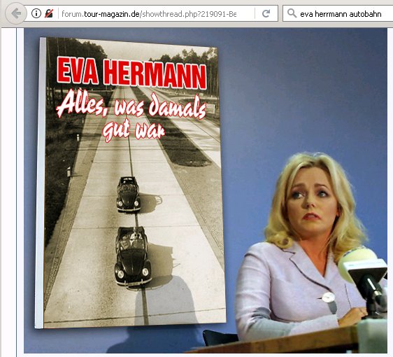 Ich erinnere mich noch genau als ich von der Sendeleitung den AUFTRAG erhielt ?Eva Herrmann? schreiben Sie  mal was  gegen ?Autobahn?!