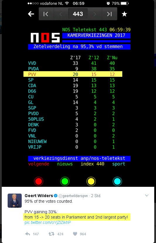 G.Wilders:1/3 mehr Stimmen  hinzu?verloren?, Rütten gewinnt -8 Stimmen!