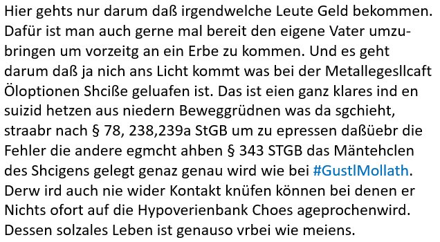 20.10.2020 06:54 Ein-Wecken mit Karlinder. Der erschossene Häftling saß dort ein weil er in einer Psychiatrie randaliert hatte. Wenn wir den Berichten über die Zustädne dort von teamwallraff oder report Mainz glauben drüfen vielleicht gar nicht zu unrecht. Denken wir etwa mal an den Fall #GustlMollath der mit pschiatrishcen mudntotmachen daran ge-hidnert werden solteeien Skandel bei der Hypoveriensbanköfftnlich zu machen oder an mich der mit den selben Methoden (und Kindapping) daran gehidnertw ird die Fake-News Aktienkusrmaipulation bei der #Metallgesellschaft AGzu anzuzeigen. https://www.bild.de/news/inland/news-inland/muenster-mit-diesem-waesche-trick-nahm-der-jva-haeftling-die-geisel-73490036.bild.html https://www.sueddeutsche.de/thema/Fall_Mollath https://geldanlegen24.eu/die-schieflage-der-metallgesellschaft-richtig-verstehen-detailliertere-information/ Keine Marmelade! Ritzen/Suizidversuch von gestern Abend 19.10.2020 17:30 Uhr war echt. Ursache: Das Schmierentheater das um mich herum veranstaltet wird. Ich werde angelogen und gemobbt. http://blog.sch-einesystem.de/ARTICLE/2020102000000/ Ich glaube die einzigen die unter „Ne Linie ziehen“ bei Bundes-trainer Christoph Daum Kokainkonsum verstehen sind ein paar Schoppenturnier-Schülerzetunsgredakteure welche permenet bekifft Unfug verbreiten wie die angebliche Metallegsellschaft Öloptionen Story (#2Big2Fail) die Milliardenschäden anrichtete, tausende Arbistzplätze kostete. Kifferfreunde des Kurdirektors-sohns und des Starkbiertest-Oberbürgermeistersohns. Ich kenne auch ne genze reihe Männer bei denen ist das egnau andersrumals bei Daum, das sind die Frauen keinerlei Stütze sodnern dejnigen die sie in die Scheiße aufwändigst hinein-reiten, Stichwort „Co-Abhängigkeit“ bei Alkoholikeinnen. Sehr,sehr verbeitet Rammstein hat da nen schönen Song zu gemacht„#StehAuf“ der auf *afaik* Blogeinträgen die auf realen Ereig-nissen beruhen basiert. Wenn der Nann als Kapitän permenet unterwegs ist udnd ie Ehefrau aus Verzweiflung übers allein-gealssen werden das trinekn anfängt. Damsl gabs noch kein Skype wo Papa vom anderen Ende der welt aus den Kidner ne Guteanchtegschichet vorlesen konnte. Im Song geht es darum wie andere leiden müssen wenn es Suchtproblematik in der Familie gibt. Ich habe wegen einer Stalkerin sogar von Bad Homburg nach Frankfurt a.M. umziehen müssen damit Sie nicht morgens nach durchgesoffener Nacht mit nem Sixpack vor der Tür steht und bei mir weitersaufen will. [0] "202010200654-0-1.jpg" [1] "202010200654-0-2.jpg" [2] "202010200654-0-3.jpg" [3] "202010200654-0-4.jpg" |