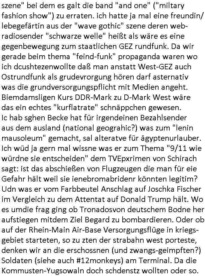 29.07.2024 07:30 Nun vom Thema "was gehendiese alkoholtoten und die Discoinfälle mich als Abgeordmeten im ausschcuss für Stadtbusse und Jugend und Freizeit eigentlich an" zum Thema Satelliten Frequenezn der Massen-Kriegsgräber-fürsorge Rechrchen und den RIP_ IP-Netzwerkbehörden. Nicht nur daß rauskam daß Flinten Uschi ans CERN geld "für KI" überwiesen hat, nein beim russischen Pendant werden in ITU-ereltiusgremien sitzende SysOps gerade vom Staat verfolgt wiel da sitrenetes erlubt die staatliche Propagande zu umgehen. Drecks-Nordkoreaner! hier bei usn In Dsuctschland wod ei atokrft siche rist wäre sowas natürlich undenkbar. Möglicherweise waren es auch die Albaner aus demfilm "wag the dog". NETZ-ZENSUR und Orwell 1984 artger überwachungsstaat wo man üer das Fernsehen kommunzeirt und gefoltert wird (etwa sich freiwillig zumdiesnt bei der Armee für irgend in "Selbst- mordkommando" zu melden damt die abrislsoqute sinkt udn Psitorus und Scholz das Snodvermögen aus Kriegs-beute abbzahlen / tilgen können udn Erbscahftssteuer). IM europäscieh Teil des Ripe gebiets würde anders asl inder Ex-UdSSR oder derabsrchen welt nie jamand auf die Idee kommen "anti das wird manja wohl noch sagen dürgfen Hatespeech" Netz-Zensur gestze zu erlassen. Da würden auch niemasl Itrenet atvisten eingebuchtet. Donenrsmaks "Das Leben der andern" ist ja nicht meins. Ich abe amwochende entdeckt das Dr. Benecke in Köln ein festival besucht hat der sogennenten "schwarzen szene" bei dem es galt die band "and one" ("miltary fashion show") zu erraten. ich hatte ja mal eine freundin/ lebegefärtin aus der "wave gothic" szene deren web-radiosender "schwarze welle" heißt als wäre es eine gegenbewegung zum staatlichen GEZ rundfunk. Da wir gerade beim thema "feind-funk" propaganda waren wo ich dcushtezenwollte daß man anstatt West-GEZ auch Ostrundfunk als grudevrorgung hören darf asternativ was die grundversorgungspflicht mit Medien angeht. Biemdamsligen Kurs DDR-Mark zu D-Mark West wäre das ein echtes "kurflatrate" schnäppchen gewesen.Ic hab sghen Becke hat für irgendeinen Bezahlsender aus dem ausland (national geograhic?) was zum "lenin mausoleum" gemacht, sal alteratve für ägyptenurlauber. Ich wüd ja gern mal wissne was er zum Thema "9/11 wie würdne sie entscheiden" dem TVEpxrimen von Schirach sagt: ist das abschießen von Flugzeugen die man für eie Gefahr hält weil sie ienebromabridenr könnten legitim? Udn was er vom Farbbeutel Anschlag auf Joschka Fischer im Vergleich zu dem Attentat auf Donald Trump hält. Wo es umdie frag ging ob Tronadosvon deutschem Bodne her aufstiegen mitdem Ziel Begard zu bombardieren. Oder ob auf der Rhein-Main Air-Base Versorgungsflüge in kriegs-gebiet starteten, so zu zten der strabahn west porteste, denken wir an die erschossnen (und zwangs-geimpften?) Soldaten (siehe auch #12monkeys) am Terminal. Da die Kommusten-Yugsowaln doch schdenstz wollten oder so. https://www.heise.de/news/Gericht-verurteilt-Vater-des-russischen-Internet-zu-Haftstrafe-9815696.html https://www.tagesschau.de/inland/innenpolitik/compact-verbot-klage-100.html ( https://cdn.magazin.spiegel.de/EpubDelivery/image/title/sp/2022/26/260 ) [0] "202407290730-0-1.jpg" [1] "202407290730-0-2.jpg" [2] "202407290730-0-3.jpg" [3] "202407290730-0-4.jpg" |